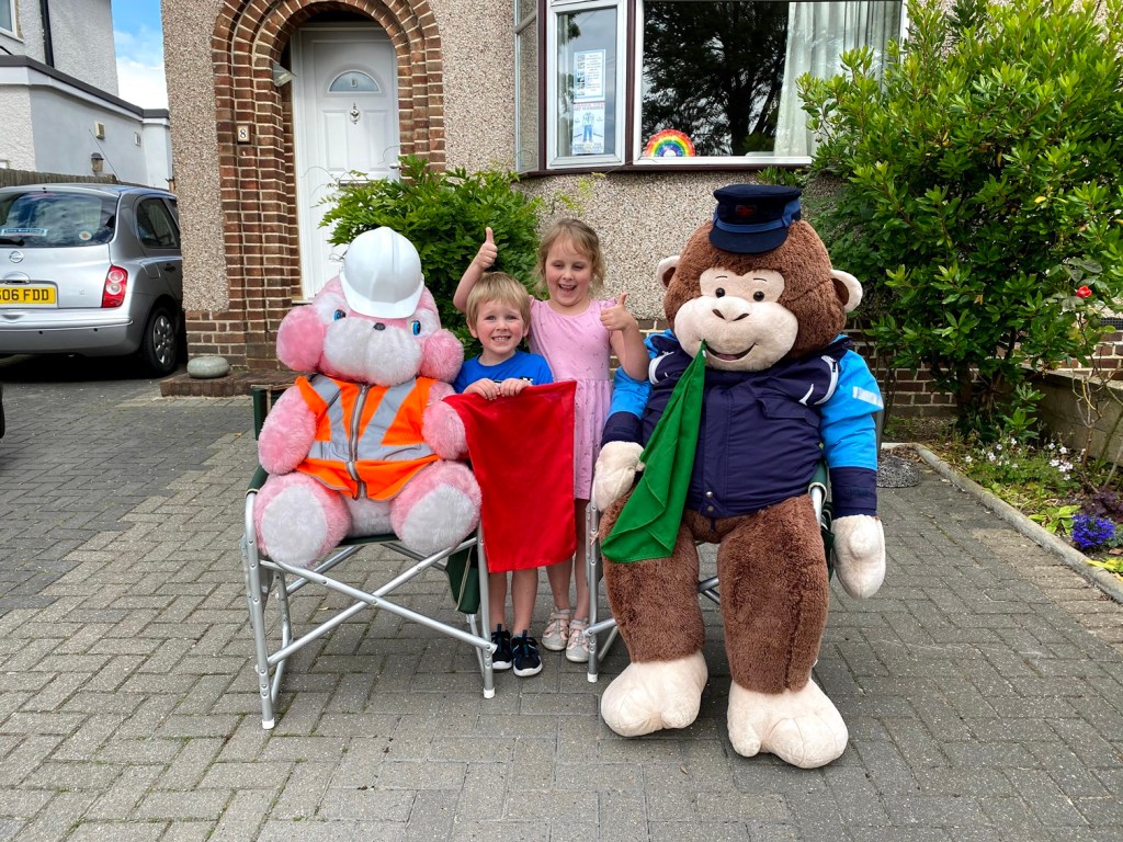 Stephen then took the kids for a walk to see friendly neighbourhood monkey to give me 10 minutes’ peace. It was much appreciated and greatly needed. Today the monkey was working as a signaller. Apparently both children were doing their best to wrestle the flags away from the teddies, so Stephen quickly moved them on.