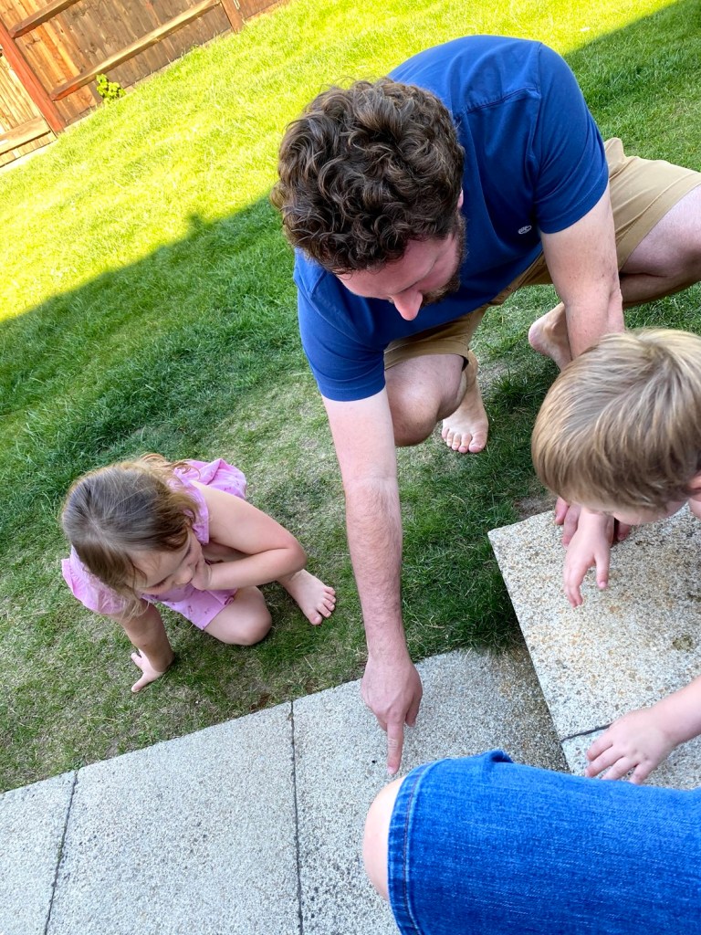 There was suddenly a lot of excitement when James spotted a beetle on the patio steps. The garden’s full of wildlife if you stop to look, but sometime James takes a real fancy to a particular bug. Again, we had to tell him that we couldn’t keep it.