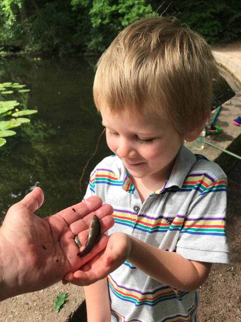 James was really excited when he arrived as we were going to spend the morning at Keston Ponds looking for mini-beasts in the water. Having seen in the weather forecast that there was 100% chance of rain at midday we set off fairly soon after James’s arrival.
