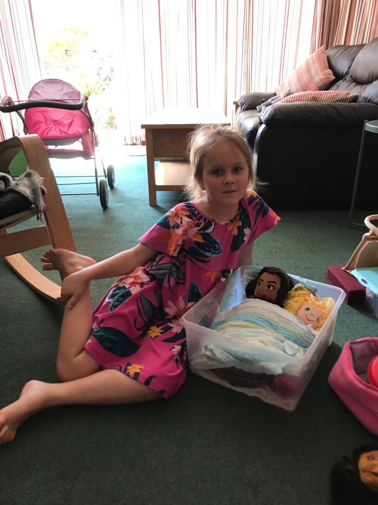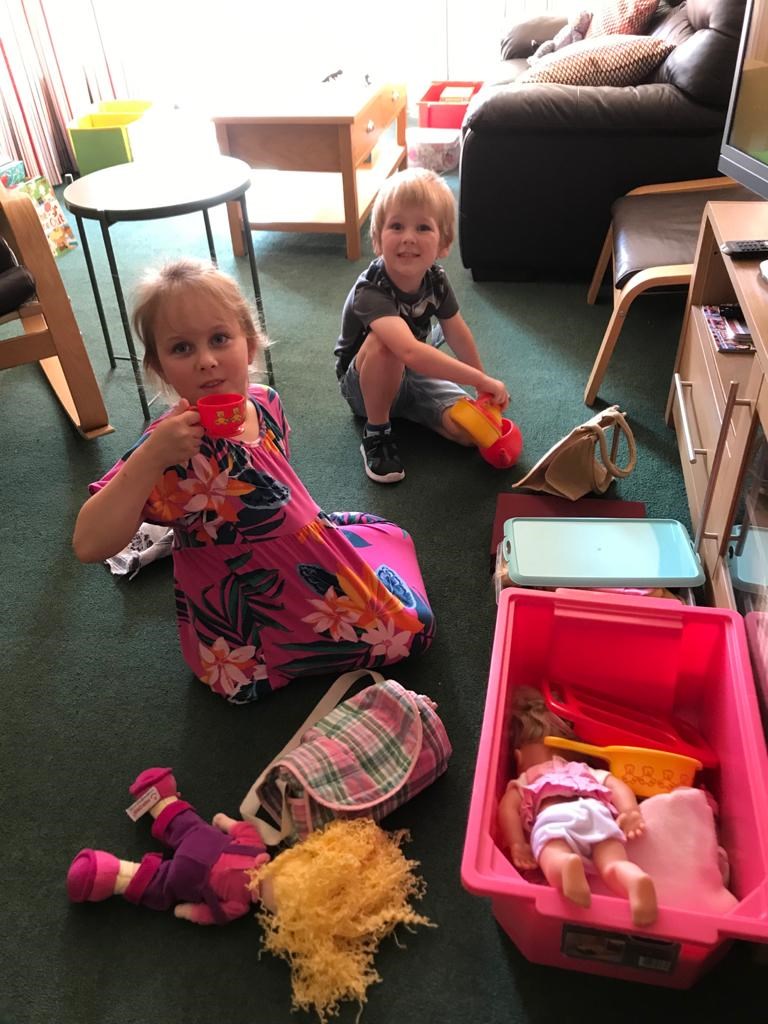 After the obligatory cups of tea, both the children proceeded to make beds out of boxes – Genevieve for some of her dolls and James for his ‘Brown Bear’.