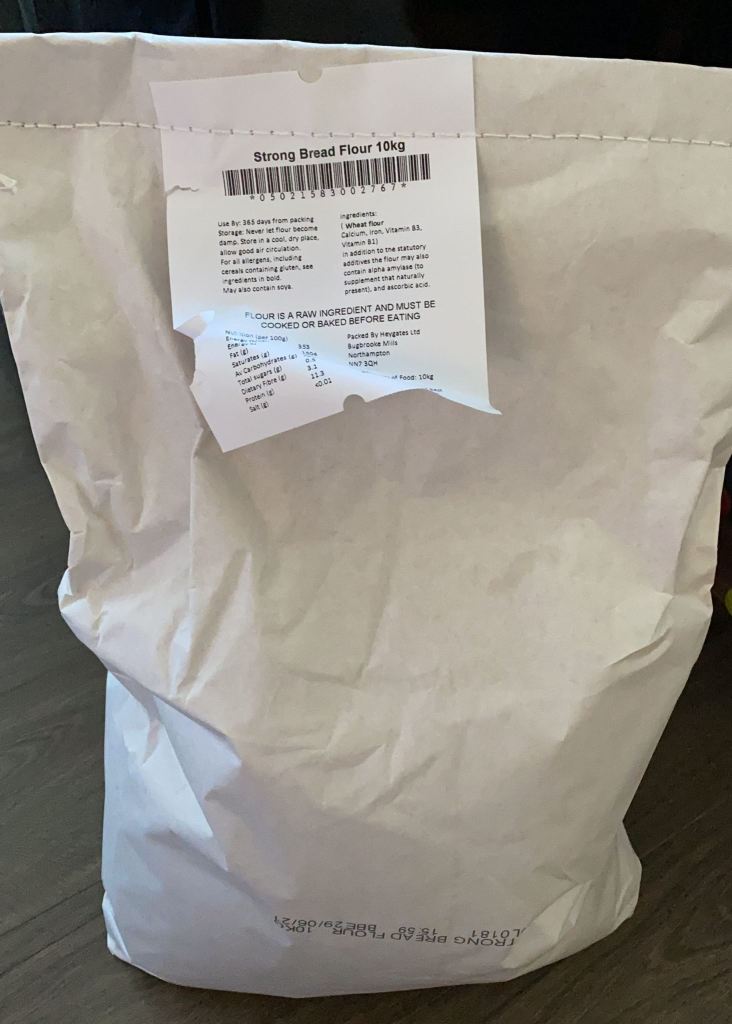 We were jolted awake by the doorbell as the Ocado delivery arrived 20 minutes early this morning. That wouldn’t normally be a problem, but James had been up super early and we needed every extra minute in bed. However, the delivery came with a pleasant surprise – a whopping 10kg bag of bread flour. It’s amazing what you value in this post-lockdown world!
