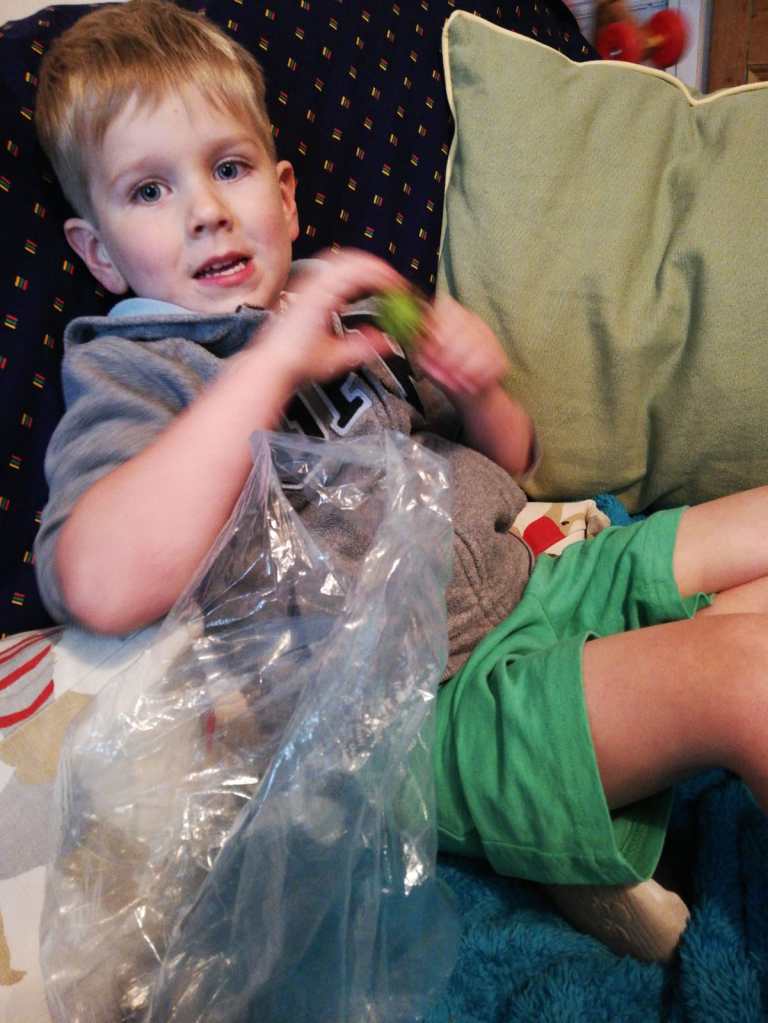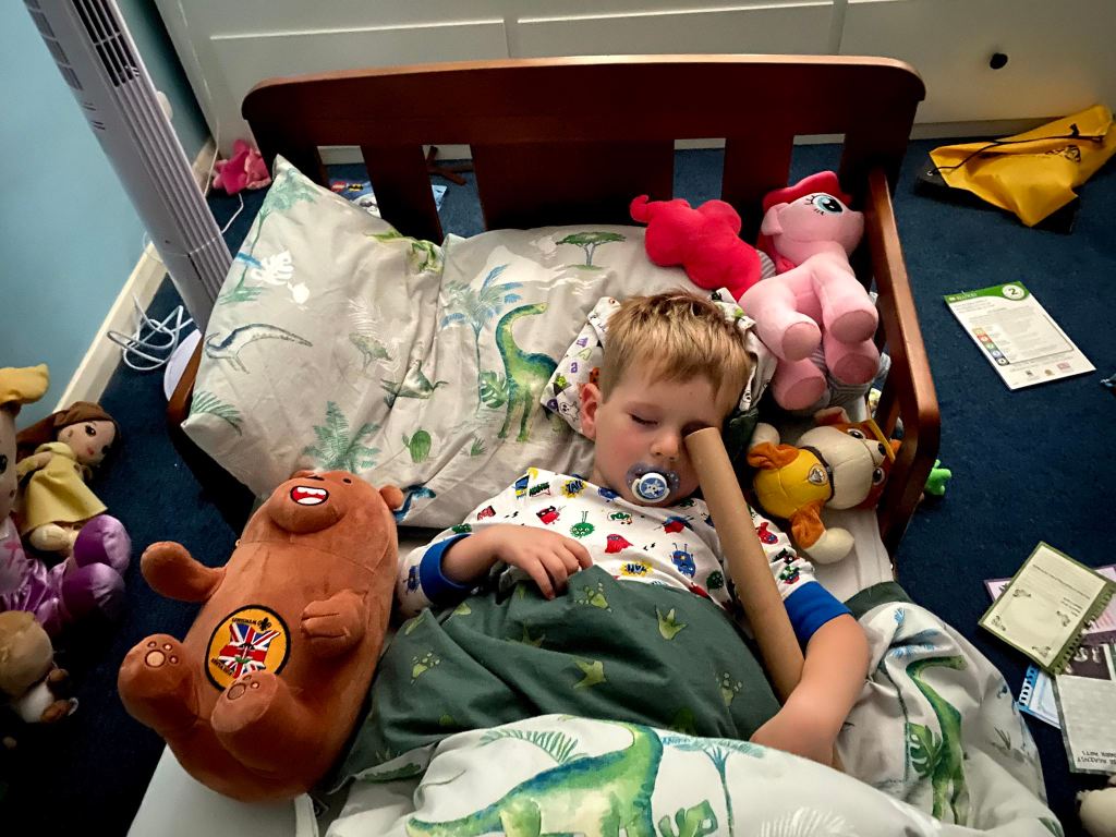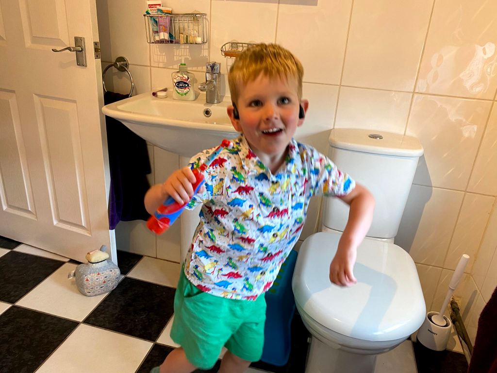 It was soon time for dinner followed by the bathroom and bedtime routine. James was all wound up so I gave him my headphones as a distraction. This didn’t work and he ended up dancing around the bathroom while “brushing” his teeth. In the end I decided that they were as clean as they were going to be for today and put him to bed.