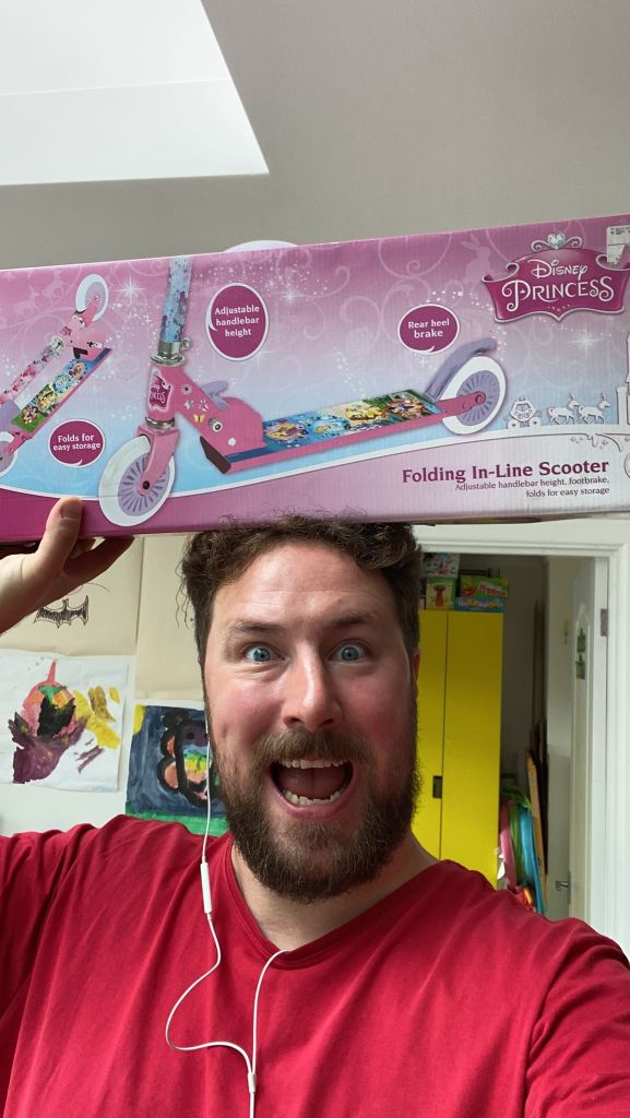 I woke up from my nap and discovered a text from Megan asking where Genevieve’s big scooter was – she’d been complaining that her current one was too small. Fortunately I knew exactly where the bigger one (with flashy lights on the base) was hiding in the garage. But then Megan asked where the other bigger one was (with Disney princesses on the base) and I was initially stumped… until I realised it was in precisely the same place as the first scooter. I’m not entirely sure how I missed it the first time – perhaps I need my eyes tested!