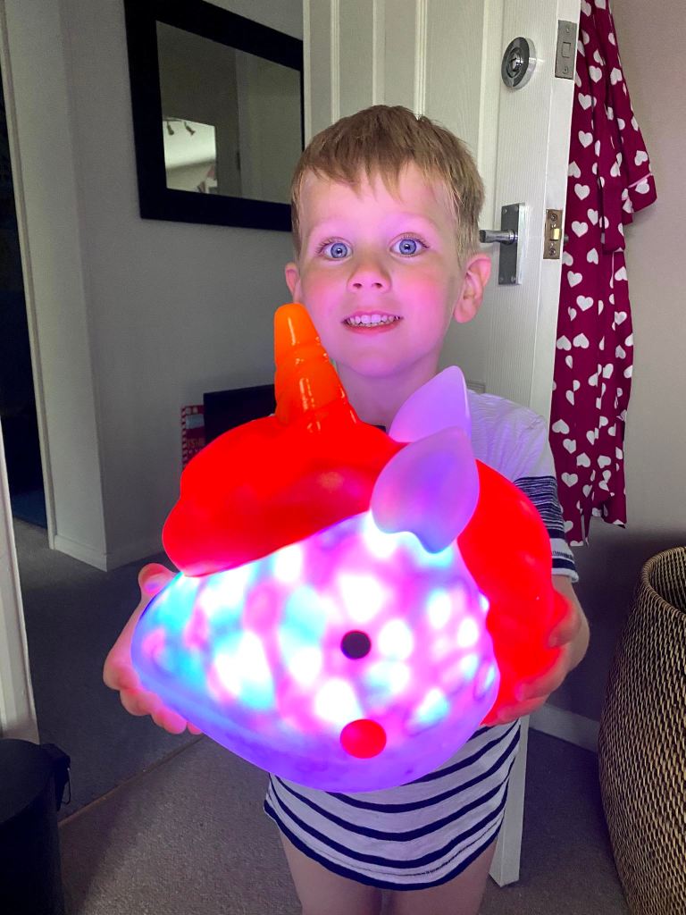 After dinner, Megan presented both children with their new unicorn night lights. When she ordered them I assumed they’d only be a couple of inches big (like a normal night light), but they’re absolutely massive! They were an instant hit with the kids though – let’s hope the work and reduce the amount of fuss while they’re falling asleep.