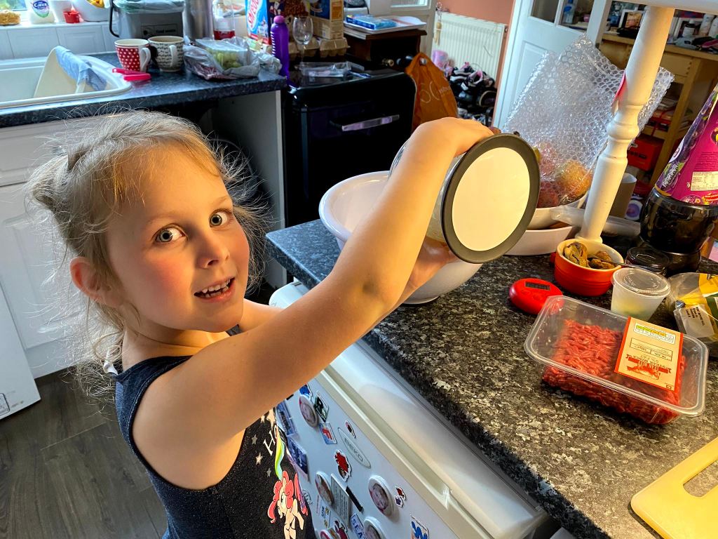 We were having homemade burgers for dinner and Genevieve was keen to help. That was until she started complaining about how much the onions hurt her eyes. I wouldn’t have minded but that was literally the first ingredient that went in to the mix!