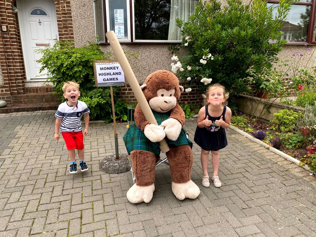 With the kids home from school and grandparents, we wandered out to see the friendly neighbourhood monkey. Today’s activity was the highland games. Fortunately neither child asked what monkeys wear under their kilts!