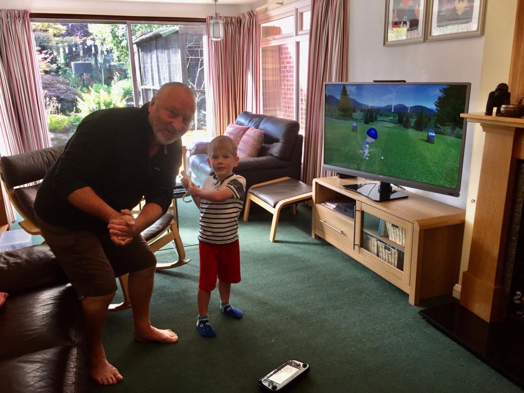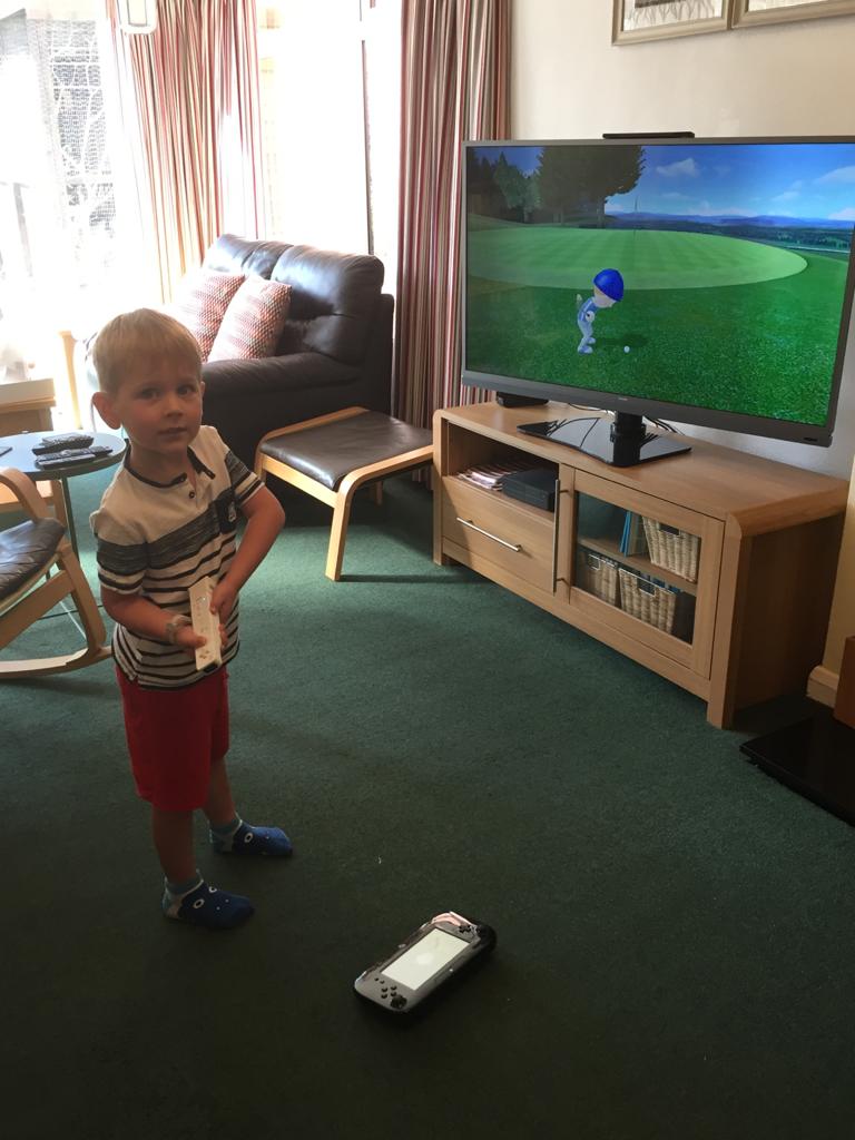 After breakfast, James requested very politely if he could play Wii golf again; and so he did. He started quite well, achieving a double bogey which brought a Cheshire cat grin to his face. Then things started to go downhill as James produced quite a number of hook shots that caused the ball to veer to the left. Even with Grandad Lawrie’s help and advice the ball kept veering away. I’m sure it’s something we can work on, but I think it may have put James off golf for a while.