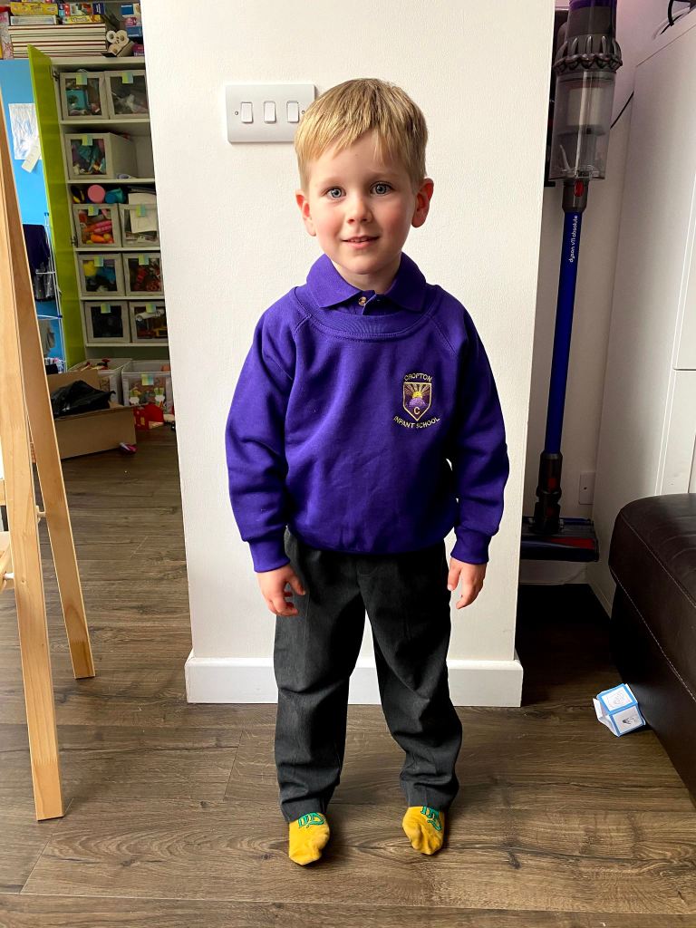 The biggest shock of the afternoon was that Megan finally convinced James to try on his school uniform. He looked so smart – I can’t believe he’ll soon be at proper school!