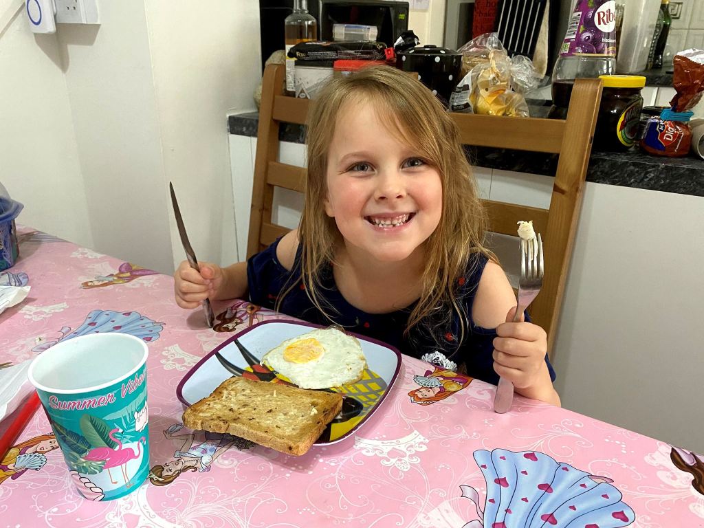 The morning started with a very specific breakfast order from Genevieve. Fried eggs, sunny side down. We’d talked the day before about all of the ways you can cook eggs and that one had caught her fancy. We happen to have two very small single egg frying pans that were perfect for the job. Genevieve was very happy with the results!