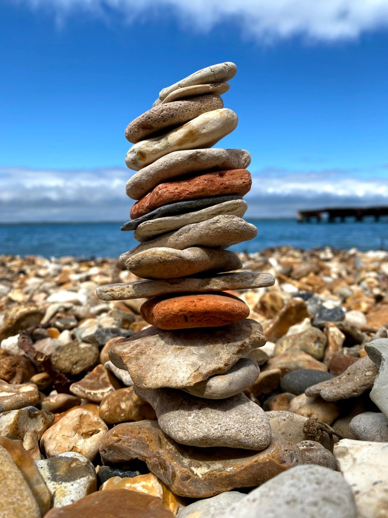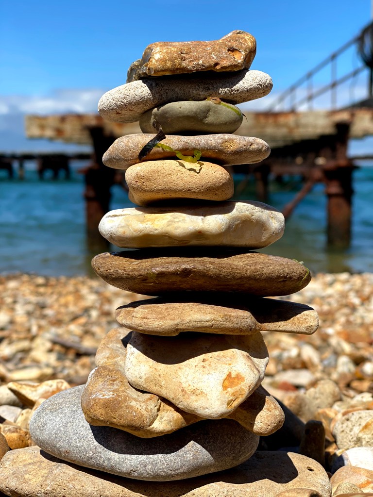 Megan continued our tradition of stacking stones on the beach. It’s a pastime that’s become infinitely more difficult as the children have got older; they’re very keen to “help”.