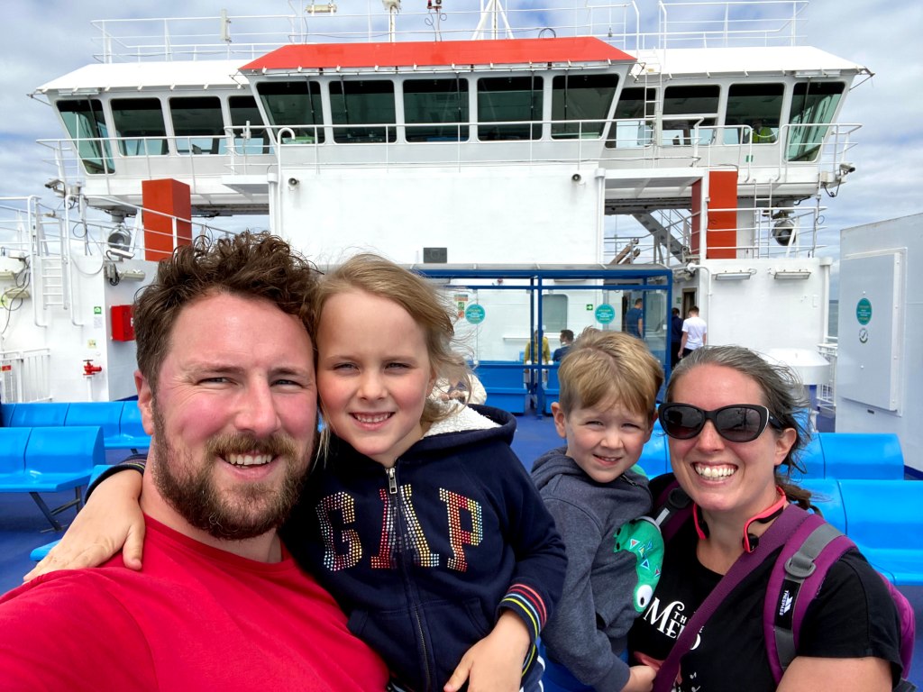 Grandma Lindsey and Grandad Lawrie were waiting for us in the carpark when we arrived at the ferry terminal. There were hugs all round and some much needed toilet visits. I stayed in the car for a quick snooze while the others went to enjoy a hot beverage and watch our ferry coming in. James was very excited to see our ferry docking but Genevieve was less interested.