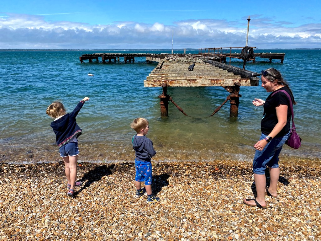 When were were done seeing who could throw the furthest, we moved on to throwing stones at a derelict pier. The kids enjoyed the variety of noises they could make by hitting the various metal, wood and concrete sections.