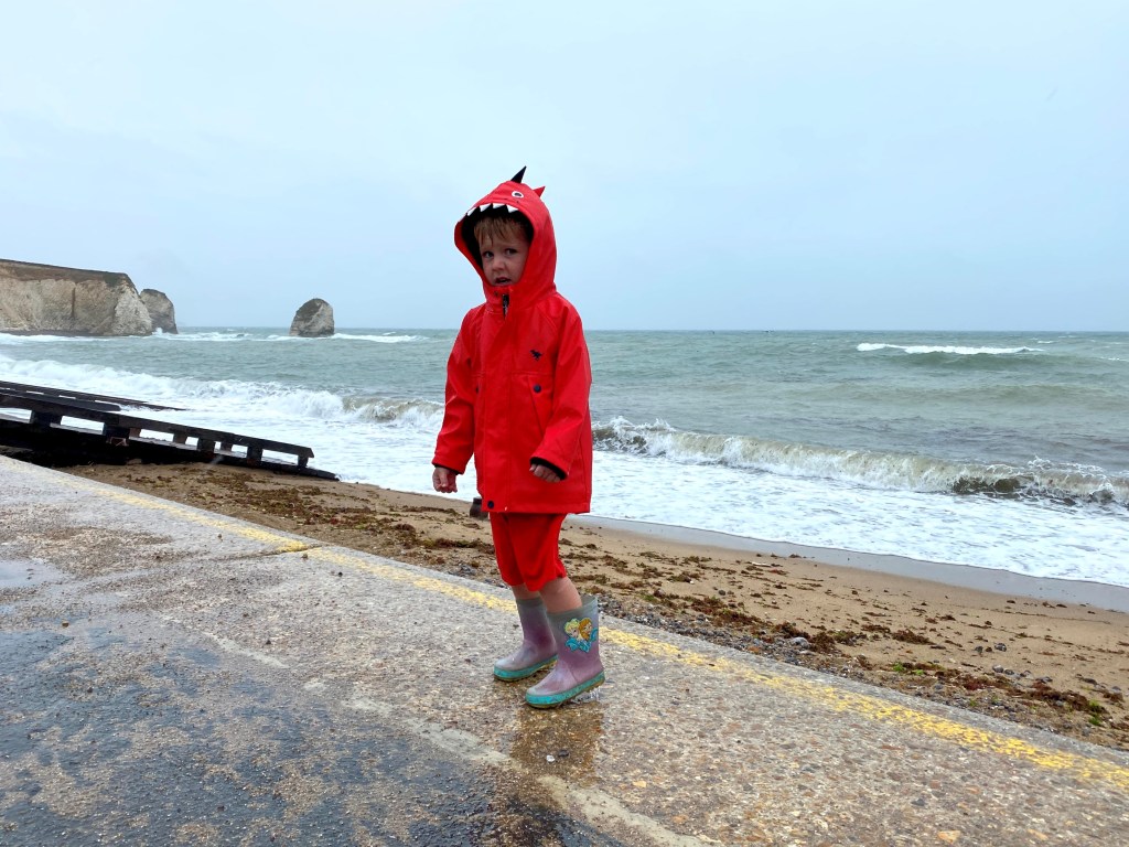 Despite the weather, James was soon totally enamoured by the sea and waves. He was constantly smiling but wouldn’t let go of Megan’s hand as it was still a little bit scary.