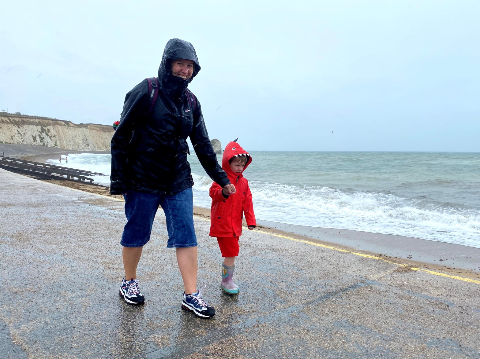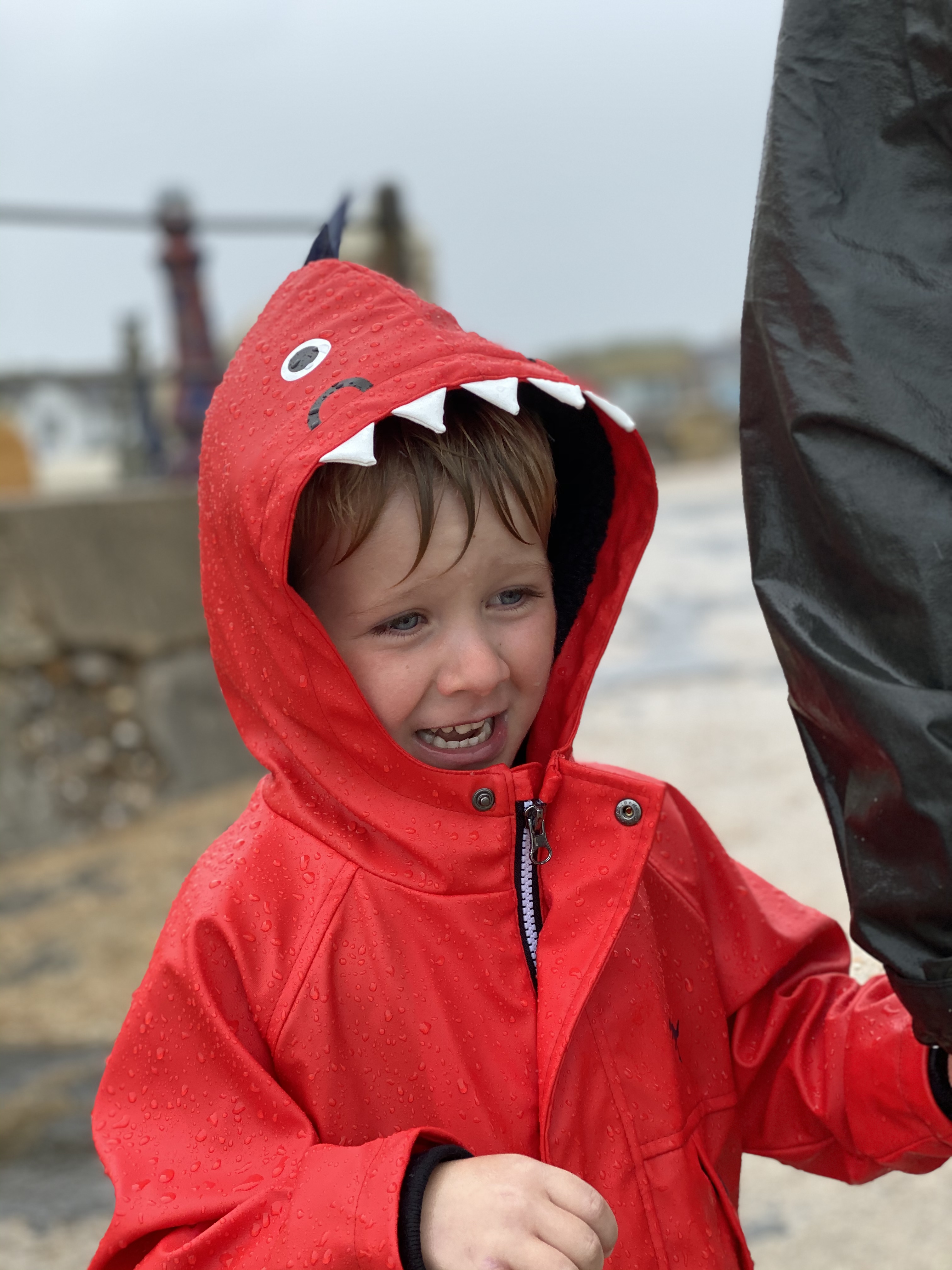 James was initially unsure about the wind, rain and raging sea. I can’t blame the little chap – it wasn’t pleasant at all. Grandma Lindsey and Grandad Lawrie were snuggly wrapped up in their knee-length waterproof coats, whereas my not-at-all-waterproof coat offered little protection from the elements and I was quickly soaked all over. Perhaps it’s time I invest in a better coat!