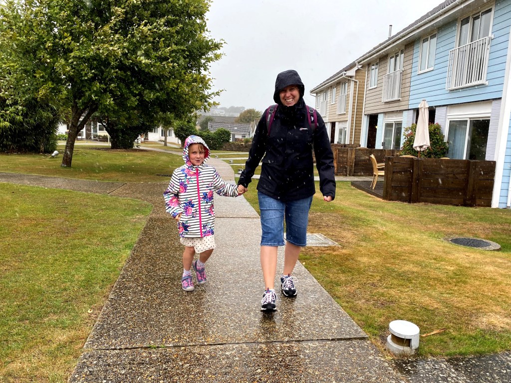 As the rain continued, the early afternoon was spent cuddling while watching a film followed by a bout of creativity in the kids’ sticker and colouring books. By then we were going a bit stir crazy and there was a tiny break in the weather so we headed out to Freshwater Bay. This proved to be a big mistake as the rain returned as soon as we left the villa, and it was twice as bad as before the brief spell of sunshine. But we were committed to the trip so off we went.