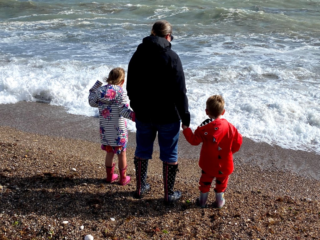 The children entertained themselves by taunting the waves and throwing stones in the sea. I’m not sure they’d be so confident about teasing the sea without their waterproof wellies on their feet though!