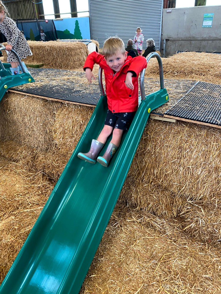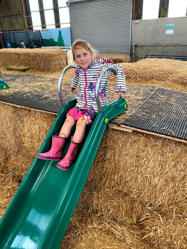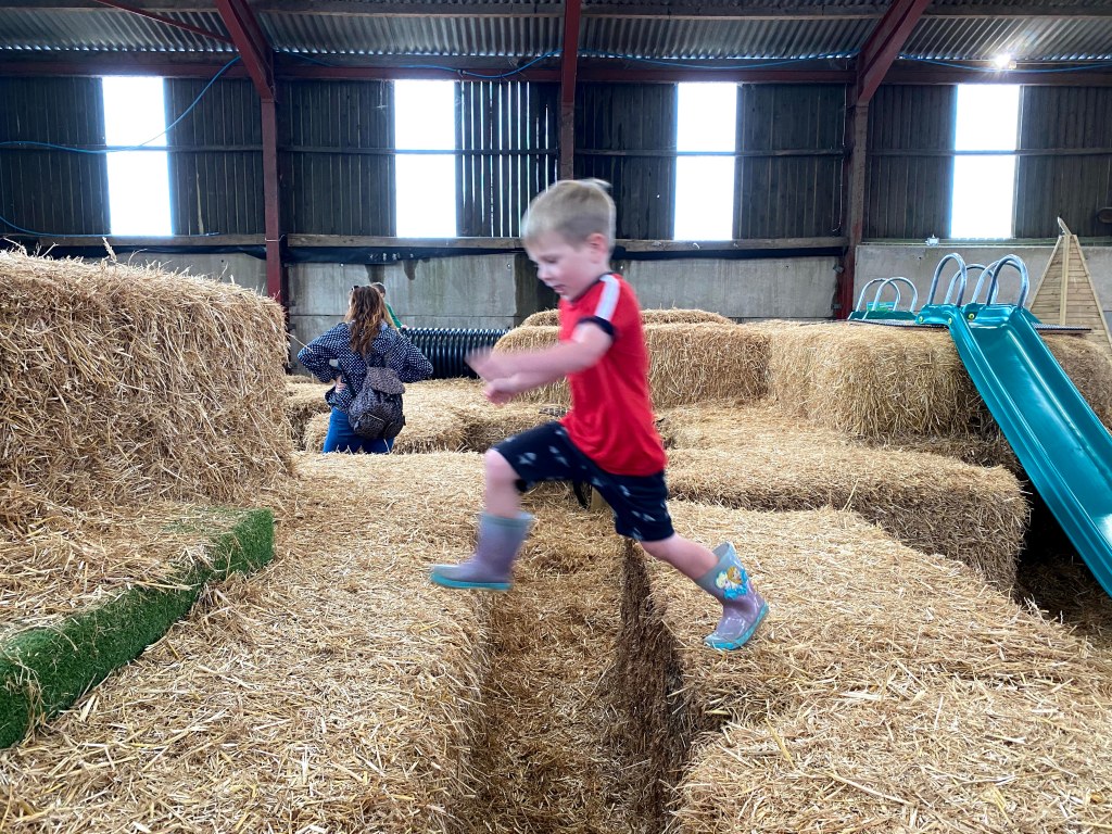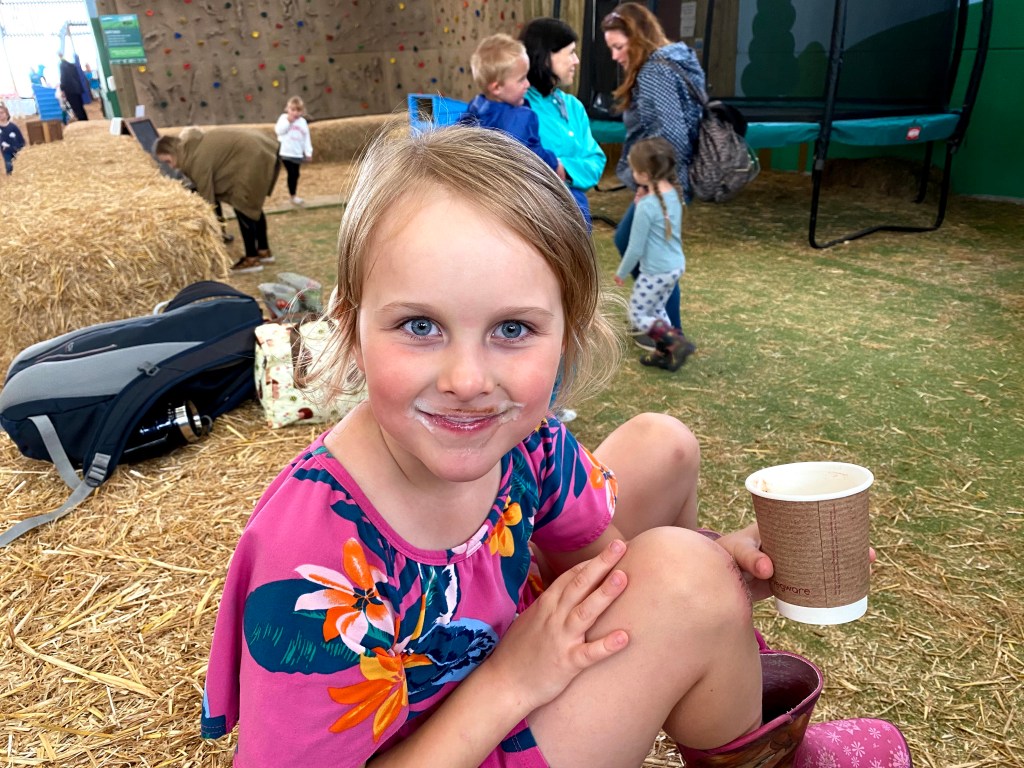 We then moved on to the trampolines and the hay-bale adventure playground. This was interspersed with a quick hot chocolate break – the kids had earned it as had Megan!