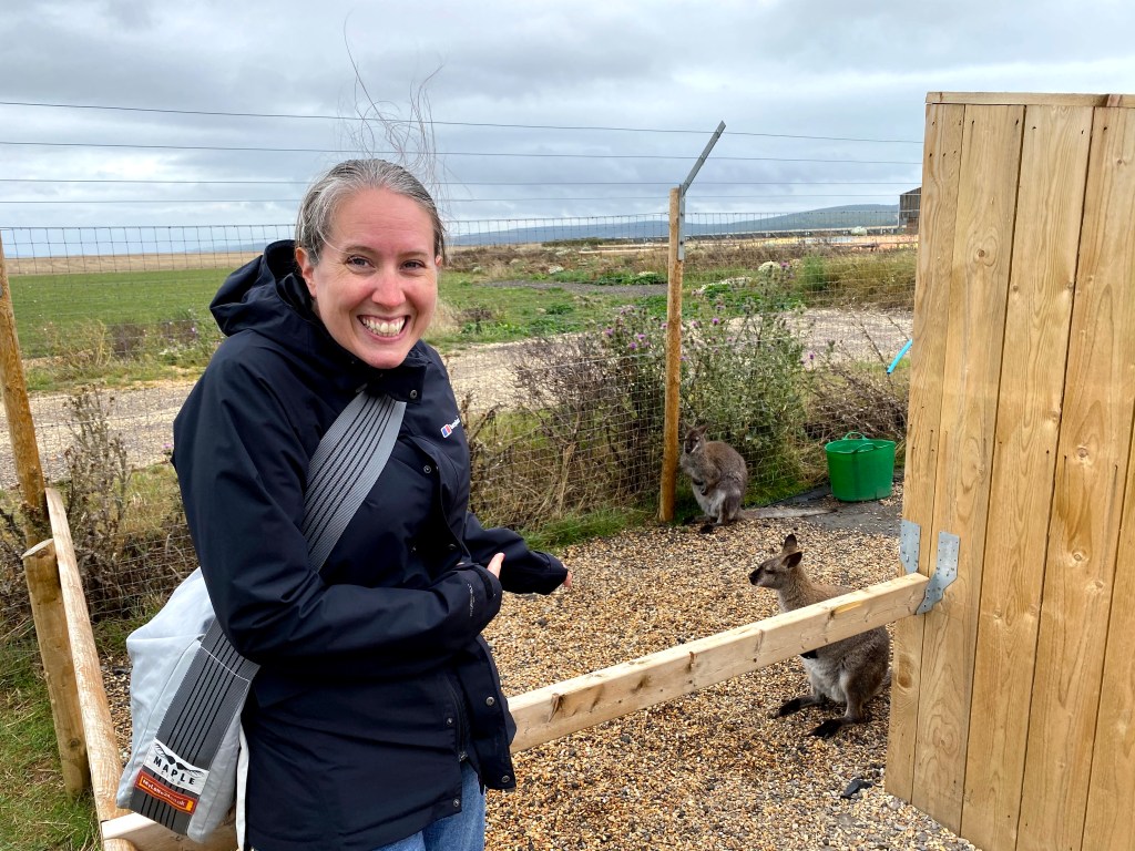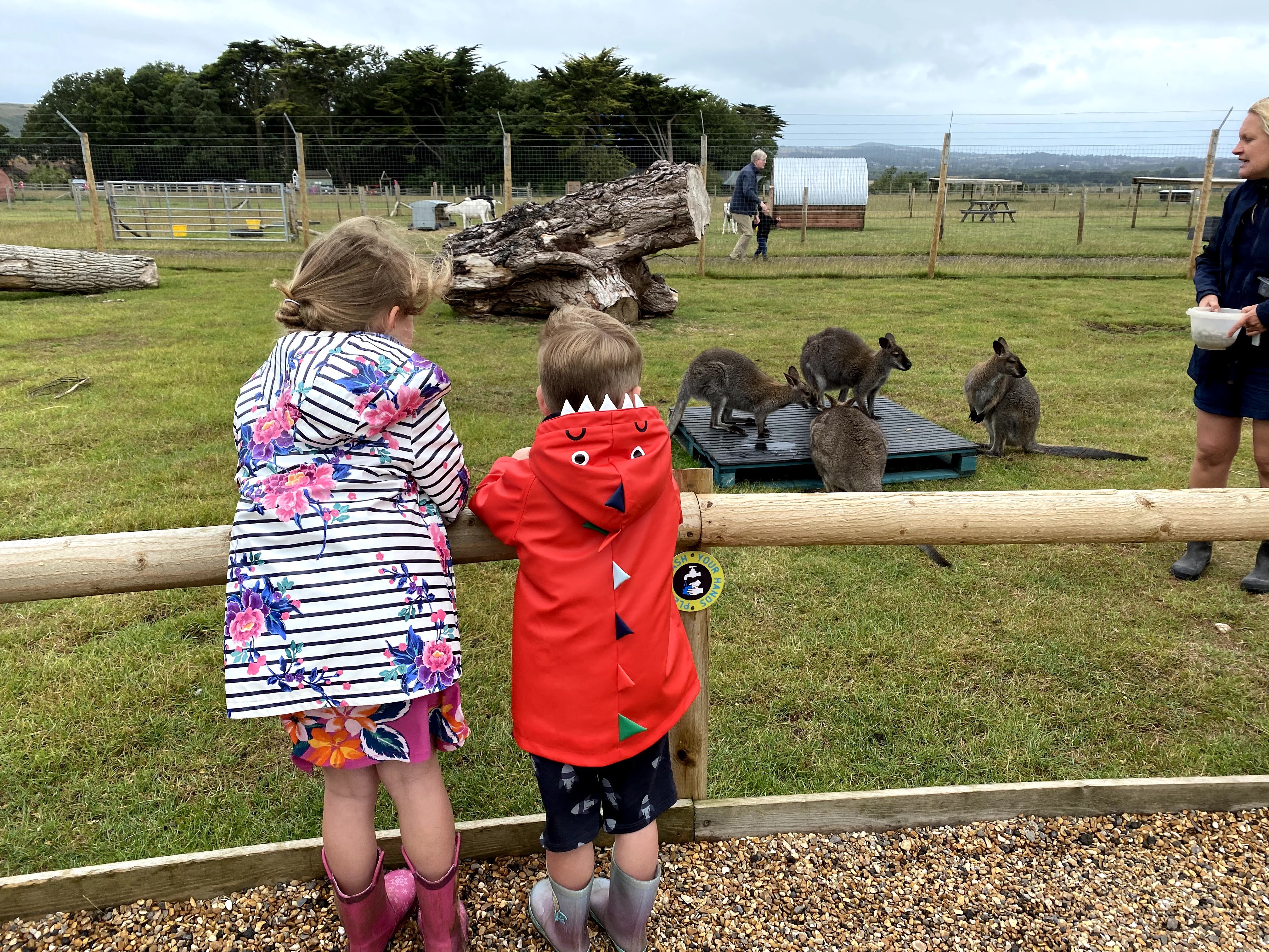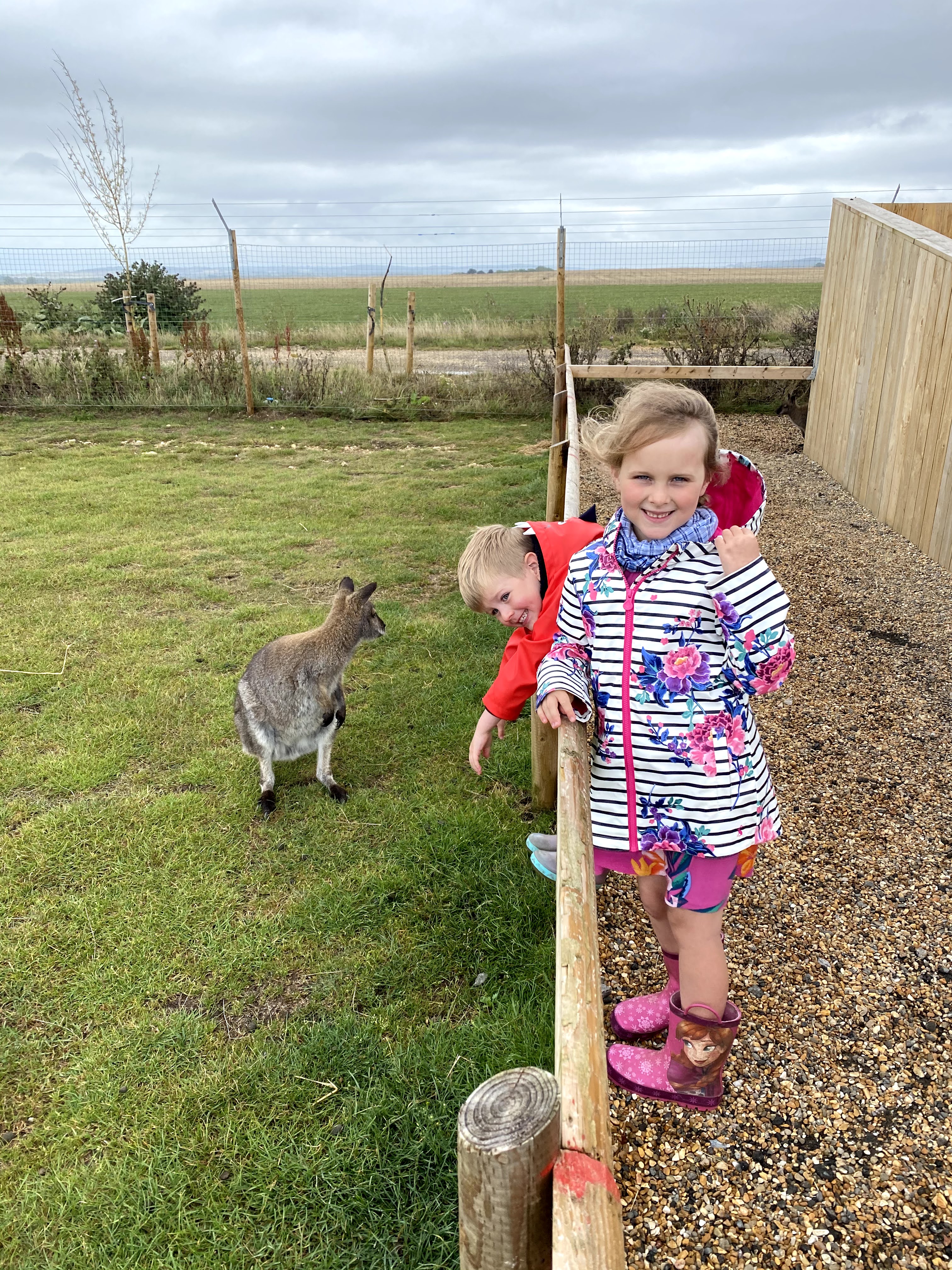 Next they wandered outside to look at the animals. It was at this point that I caught them up. Out of all the animals the wallabies were the biggest hit and we happened to be there for their breakfast. Perfect timing!