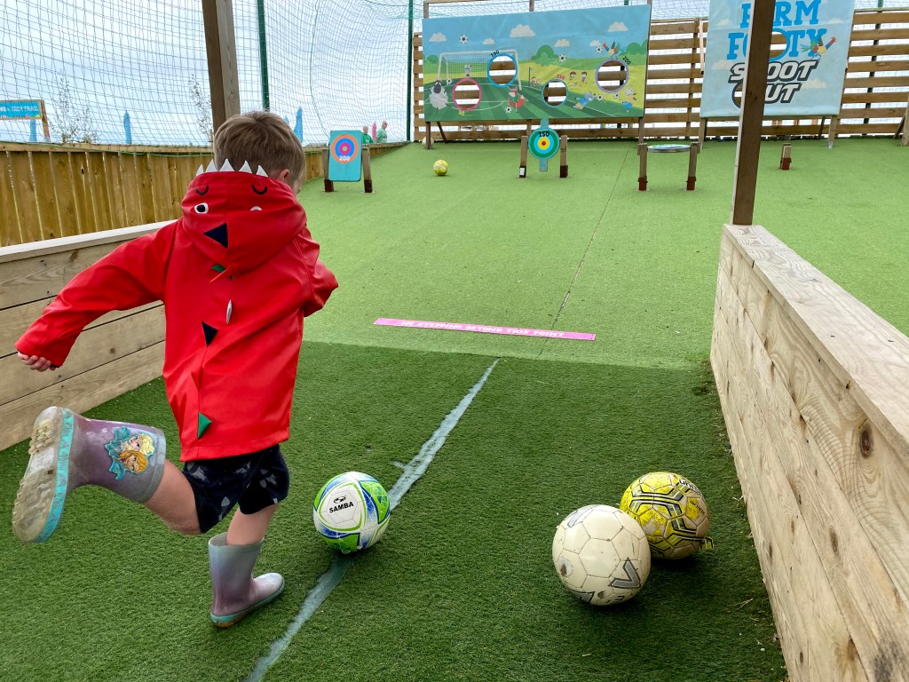 James was bored of the animals and decided to have a sulk, so I took him to the football target practice area in an attempt to relieve some of the pent up grumpiness.