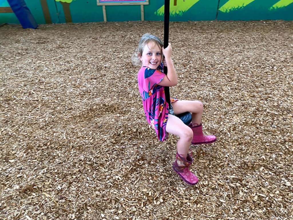 Exhausted from the go-karting we moved into the barn and onto the zipwires. I had a bit of a shout at Genevieve for running directly into the path of an oncoming zipwire rider (much to Megan’s embarrassment as my “dad voice” always turns heads), but it was soon forgotten as they scrambled up to the start of the zipwire.