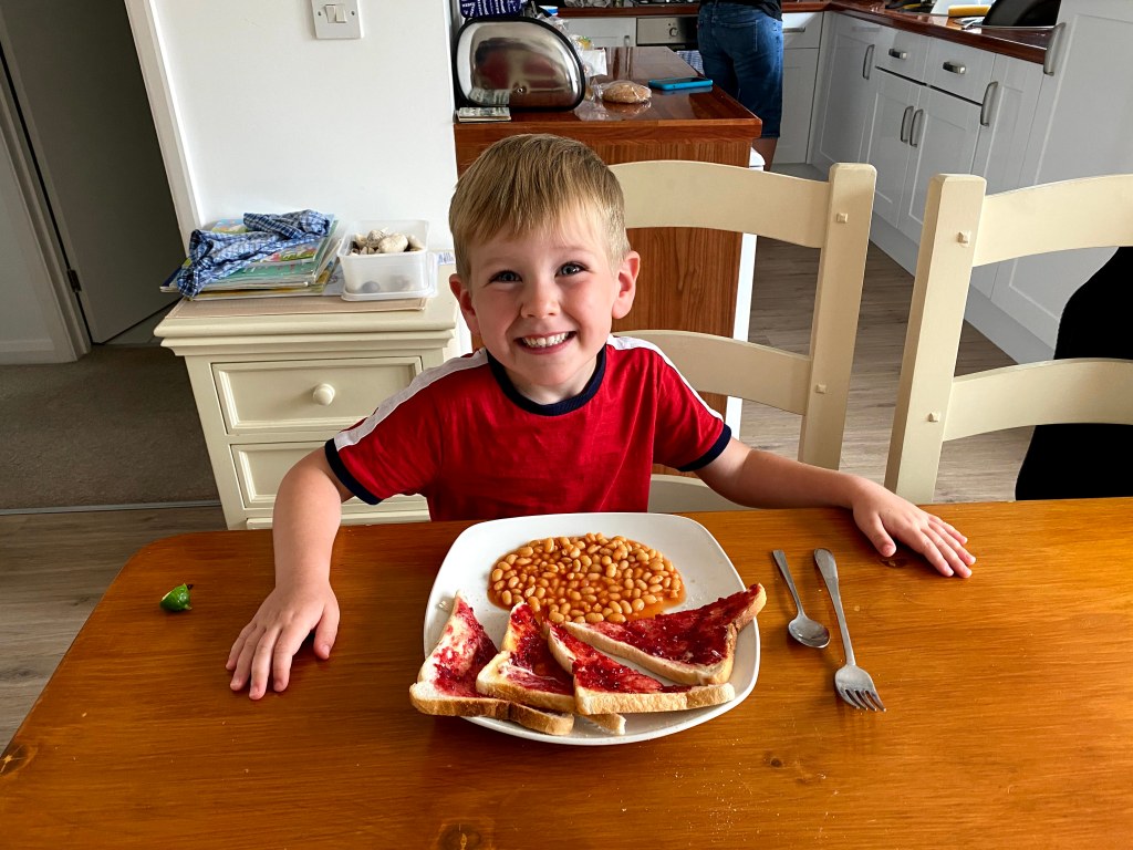 With all of the excitement over, we headed home for lunch. James opted for the classic combination of jam toast and baked beans. What more could a growing boy want – yummy!