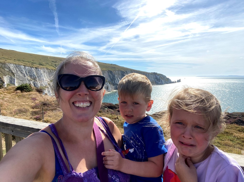 We prepared a packed lunch, applied lashings of sun cream on the kids, and then headed off to Alum Bay. As we got close to Alum Bay the traffic came to a stand still. We though there had been an accident, but we then twigged that it was just a massive queue of cars waiting to get into the car park. We persevered and it actually moved a lot faster than we thought it would.