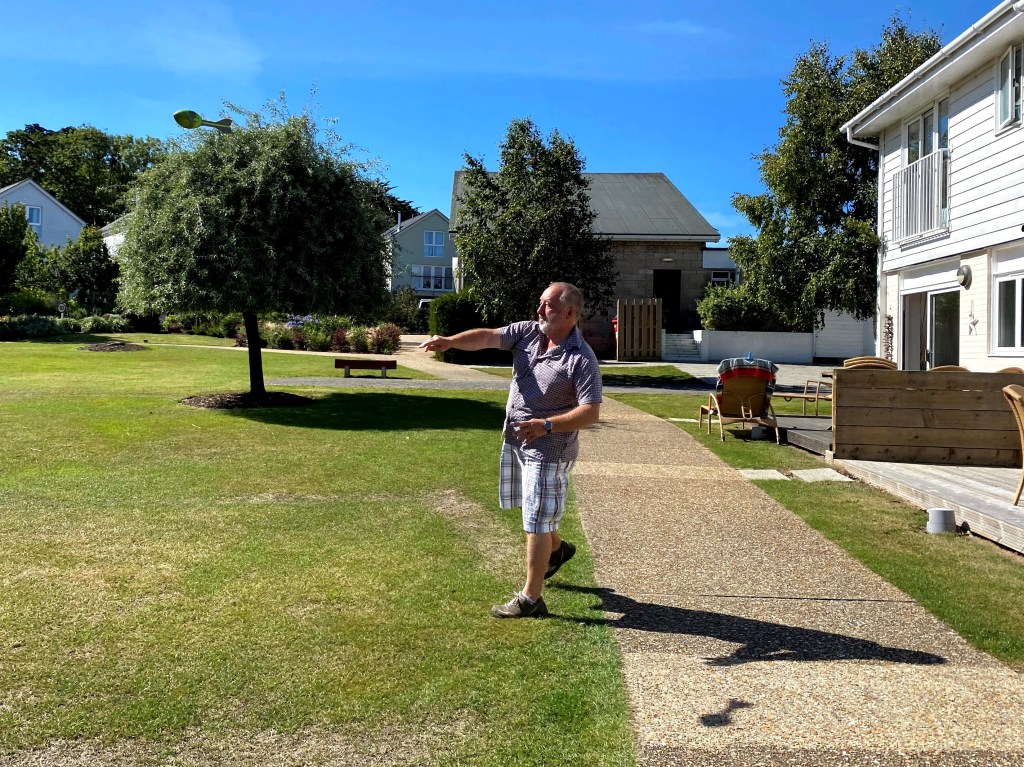 James then added new rules where he got a “point” for hitting the nearby tree. Grandad Lawrie took it too far though and got the Vortex stuck high up in the branches. James said “you lose a point Grandad”, and rightly so.