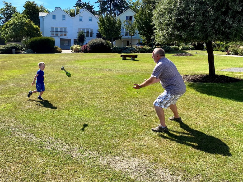 The throwing soon turned into a different game with Grandad Lawrie “bombing” James (with James squealing with delight). Great fun for all involved!