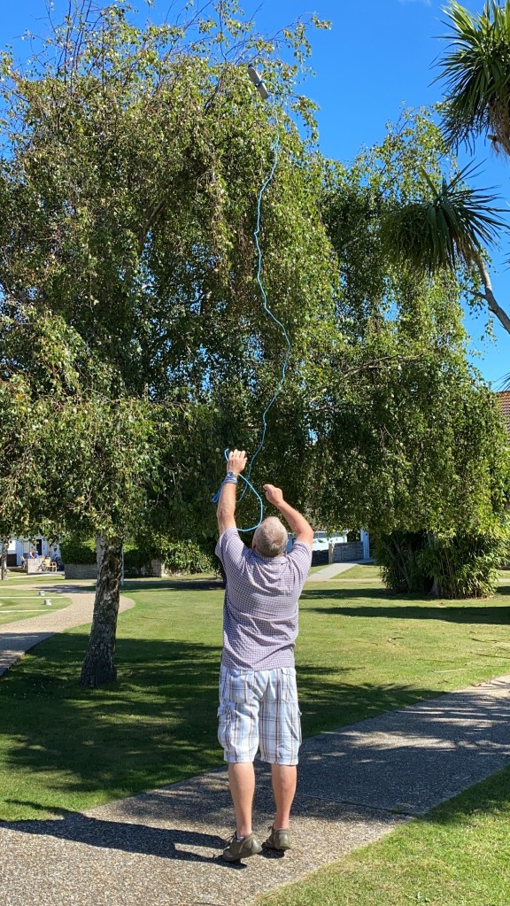 Luckily there was rope in the car boot, so the newly broken broom head was attached to the end of the line and swung up into the tree. After a few more attempts the Vortex was finally back in action.