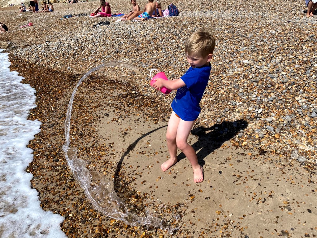 And once he’d worked out he could throw water instead of stones he was very content filling up his bucket and flinging the water back into the sea. Simple pleasures are often the best.