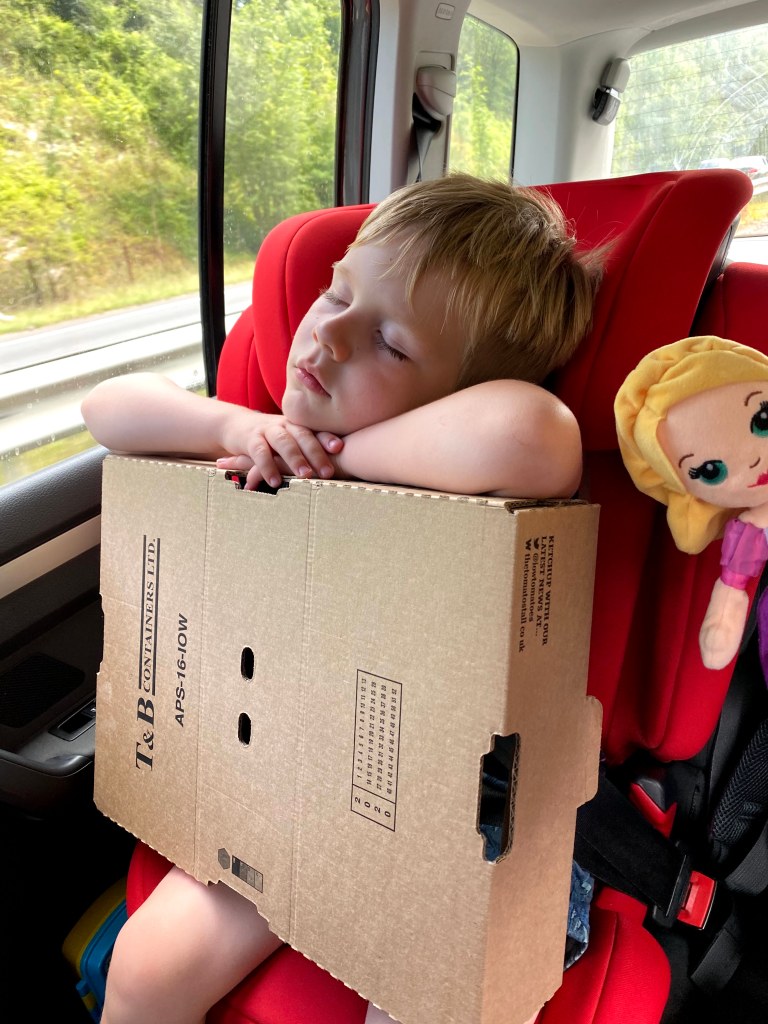 The only other incident was James falling asleep on his box. It can’t possibly have been comfortable but he did look amazingly adorable! After a couple of hours we arrived home without anything else of note happening.