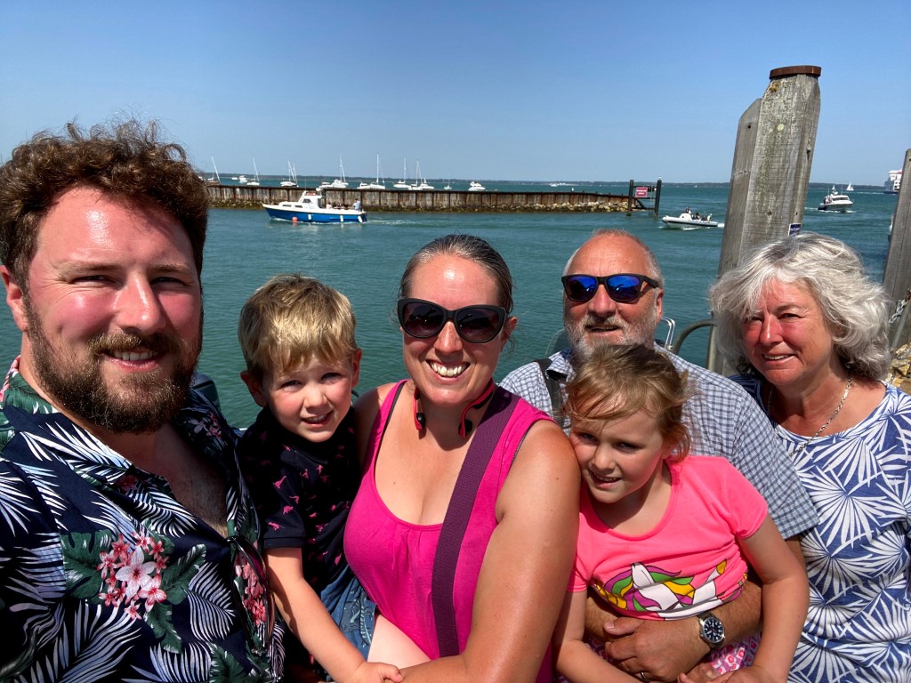 We finally made it onto the ferry and we rushed to get to the front of the upper deck again. We had wonderful views (although Megan noted that her family would normally sit at the back on their return journeys to the mainland to say goodbye to the Needles). James had great fun shouting out whenever he spotted a buoy (much to the amusement of the surrounding passengers), and both kids waved enthusiastically at the passing boats (even though none of the passing ferry passengers waved back – killjoys!).