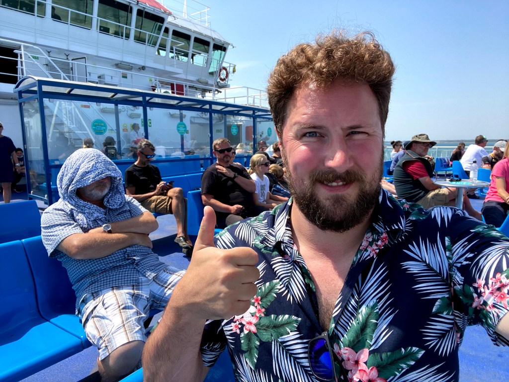 Before we knew it the tannoy system announced that it was time to disembark. But there was just time for one last selfie on the ferry first, obviously.