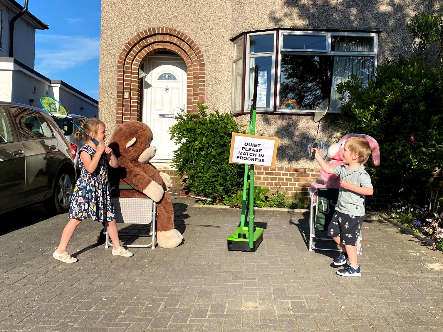 This children played quite peacefully but, shortly afterwards, the neighbours certainly knew that Genevieve and James were visiting from the cacophony of noise/music from the kazoo and recorder being played very loudly around the garden.
